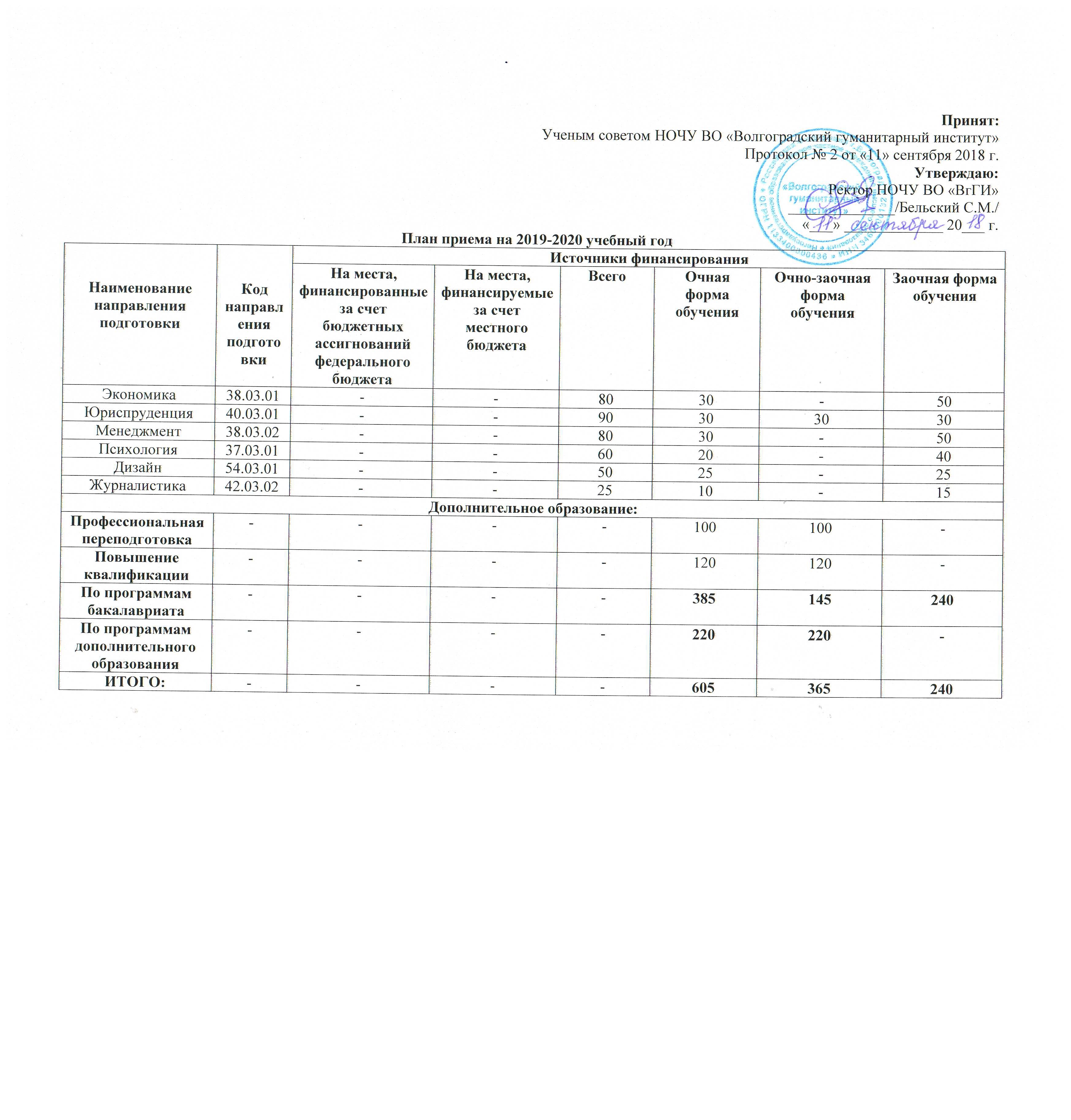План приема на 2020-2021 учебный год