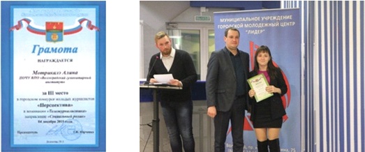 4 декабря 2015 г. студентка направления «Журналистика» Матрикалэ Алина приняла участие в конкурсе молодых журналистов «Перспектива», проводимом Комитетом молодежной политики и туризма Администрации Волгограда, где заняла 3 место в номинации «Тележурналистика»