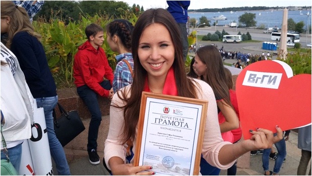 12 сентября 2015 г. Председатель регионального комитета молодежной политики Елена Слесаренко вручила почетную грамоту комитета лучшим студентам города, внесшим особый вклад в развитие региона. Среди них студентка юридического факультета Дерюгина Софья награжденная за активное участие в творческой, научной и волонтерской деятельности